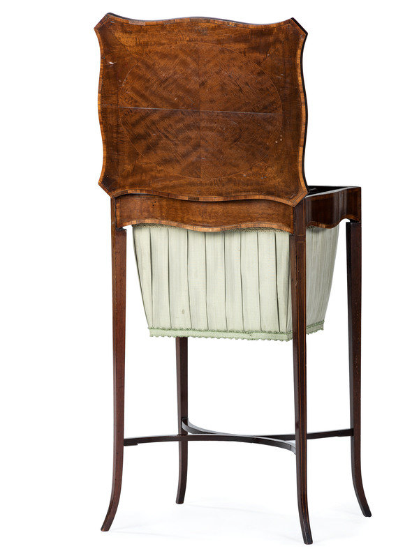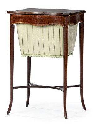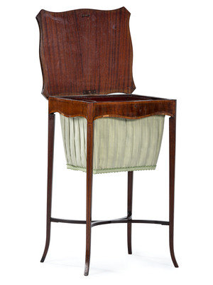 An English Mahogany Sewing Stand with Silk Bag