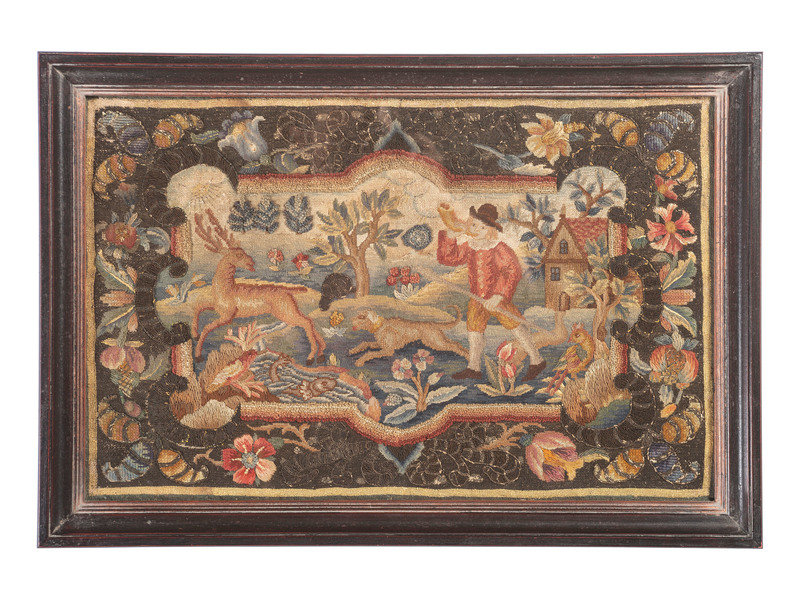 An English Needlework Embroidered Hunt Scene