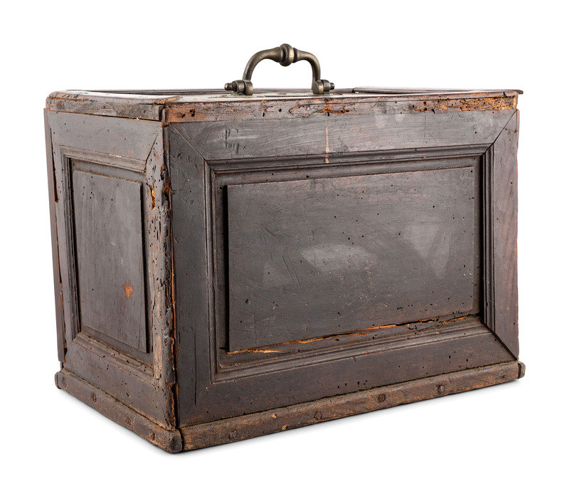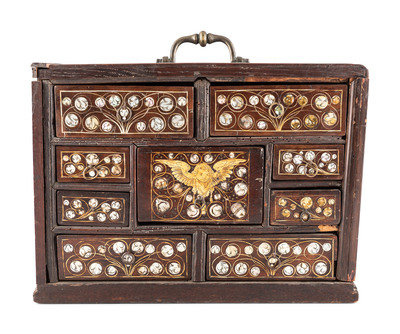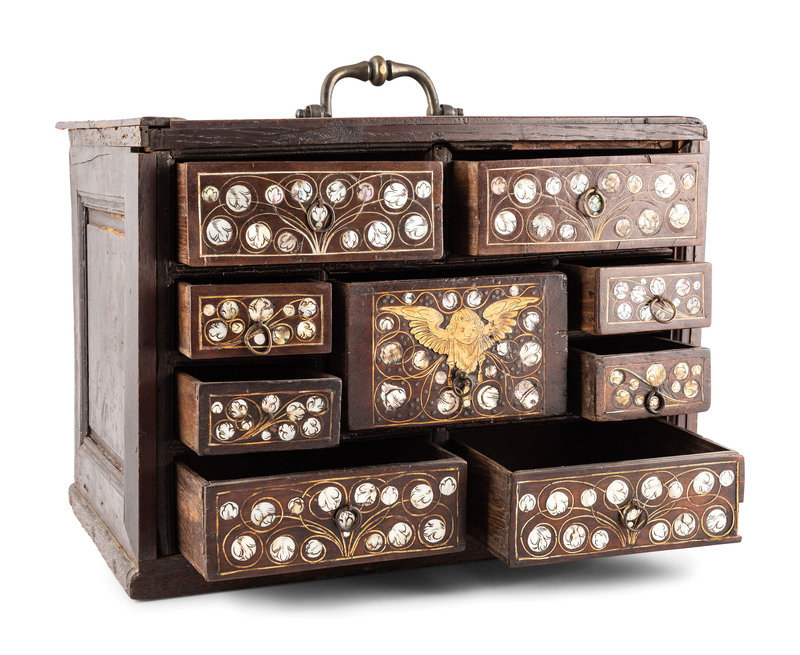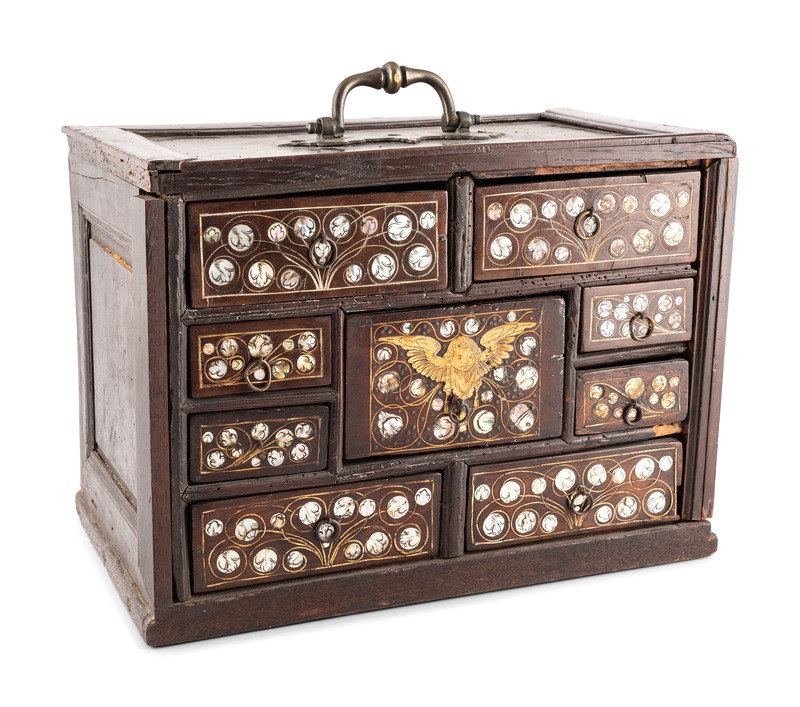 An English Walnut and Oak Mother of Pearl Inlaid Desk Cabinet