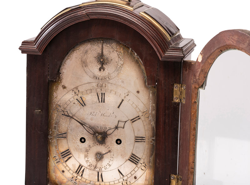 the silvered dial inscribed Robt Wood / LONDON.