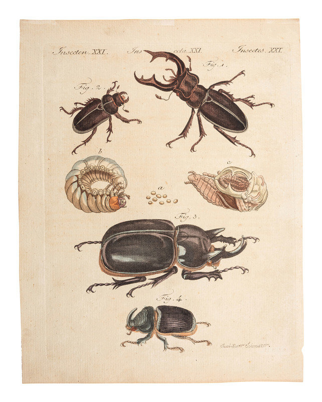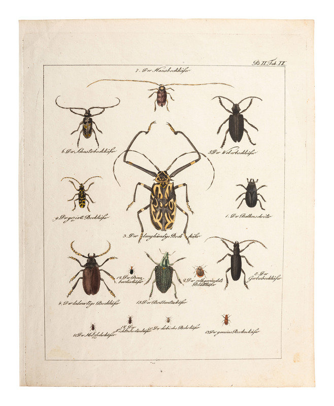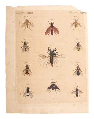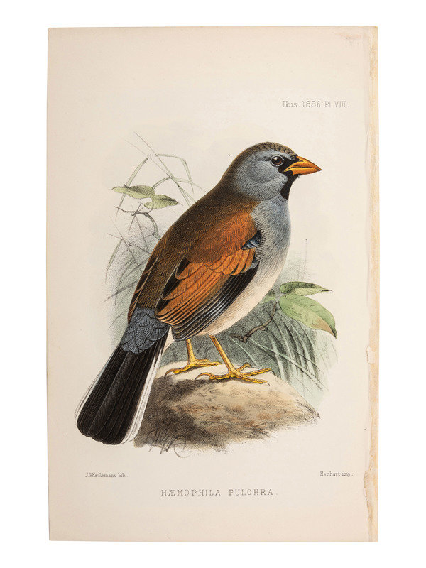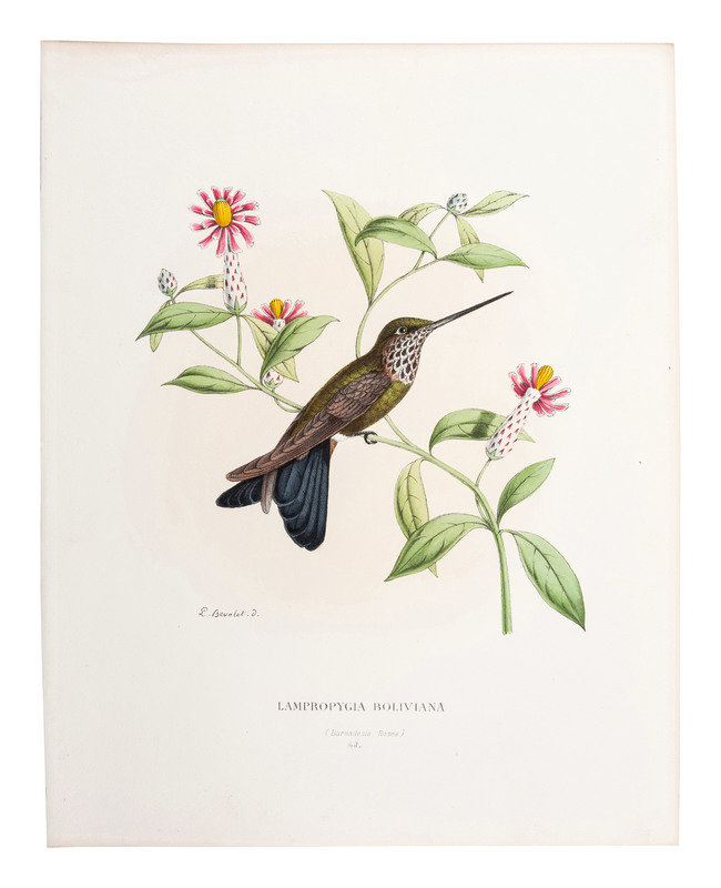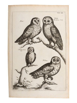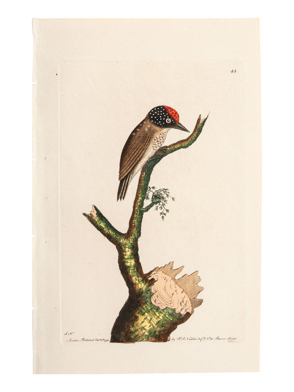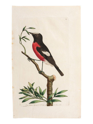 154 engravings, mostly hand-colored, including examples by Frederick P. Nodder (English, ca 1770-1800), J.G. Keulemans (Dutch, 1842-1912), William Curtis (English, 1746-1799), Eleazar Albin (German, 1690-1742), John Gould (English, 1804-1881) & H.C. Richter (English, 1821-1902), and J. William Lewin (English, 1747-1795), among others.