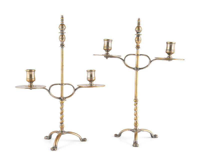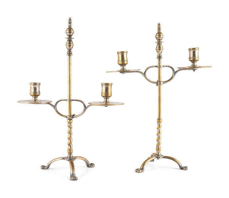 A Pair of Continental Brass Two-Light Telescoping Candelabra