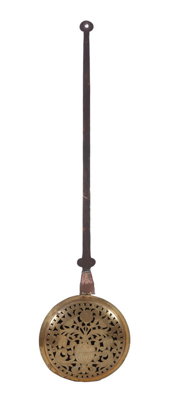 An English Wrought-Iron and Pierced and Engraved Brass Warming Pan