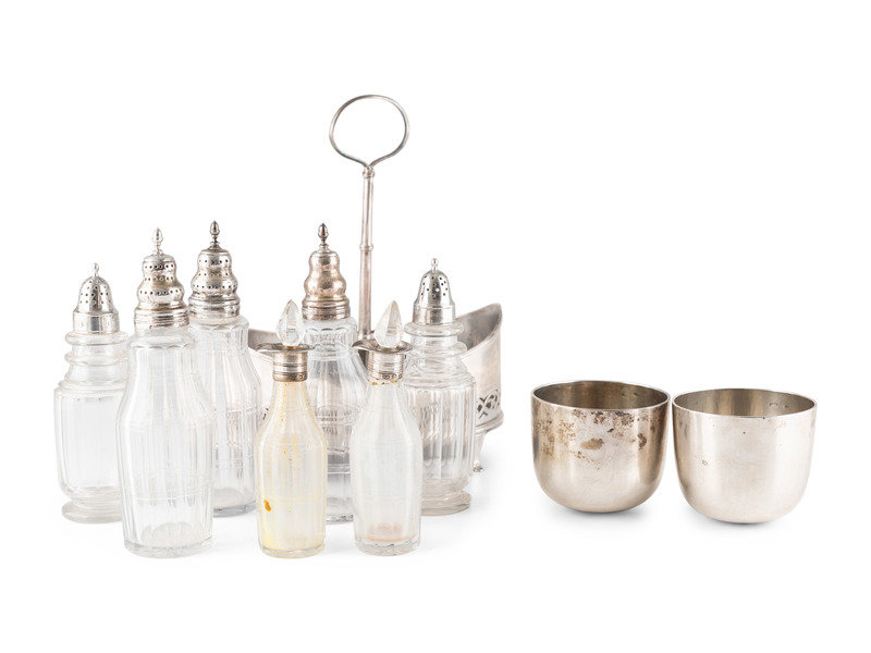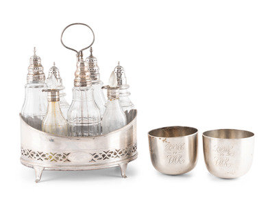 A George III Silver Cruet Set and Pair of Wine Cups