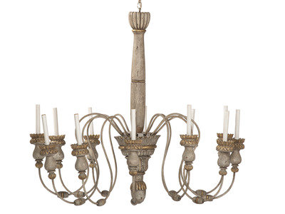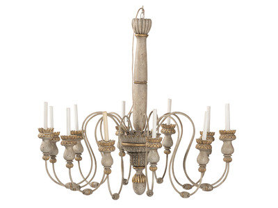 A Pair of Carved and Painted Wood Twelve-Light Chandeliers
