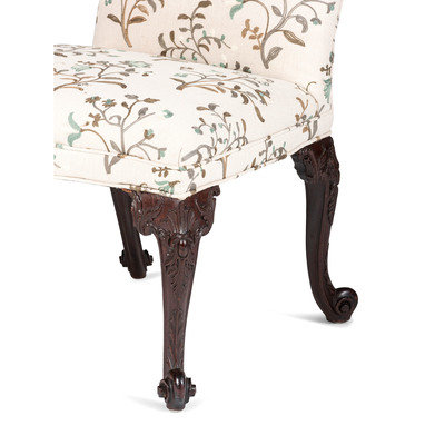 A Chippendale Carved Mahogany Serpentine Seat Scroll-Foot Side Chair