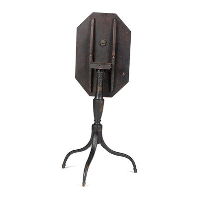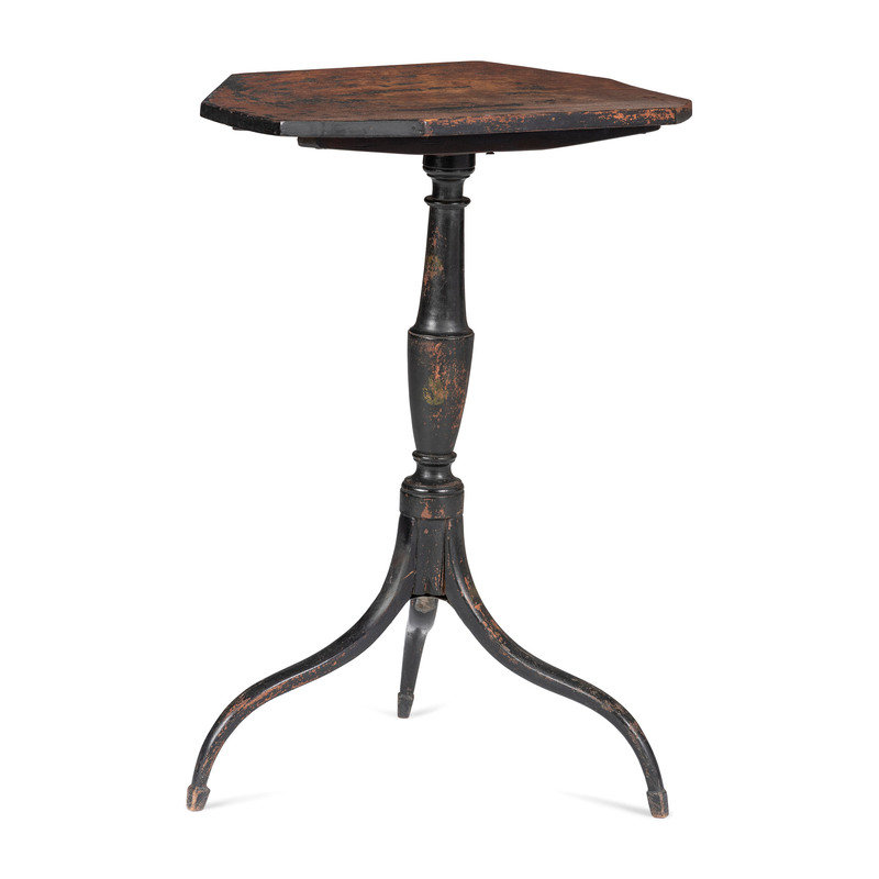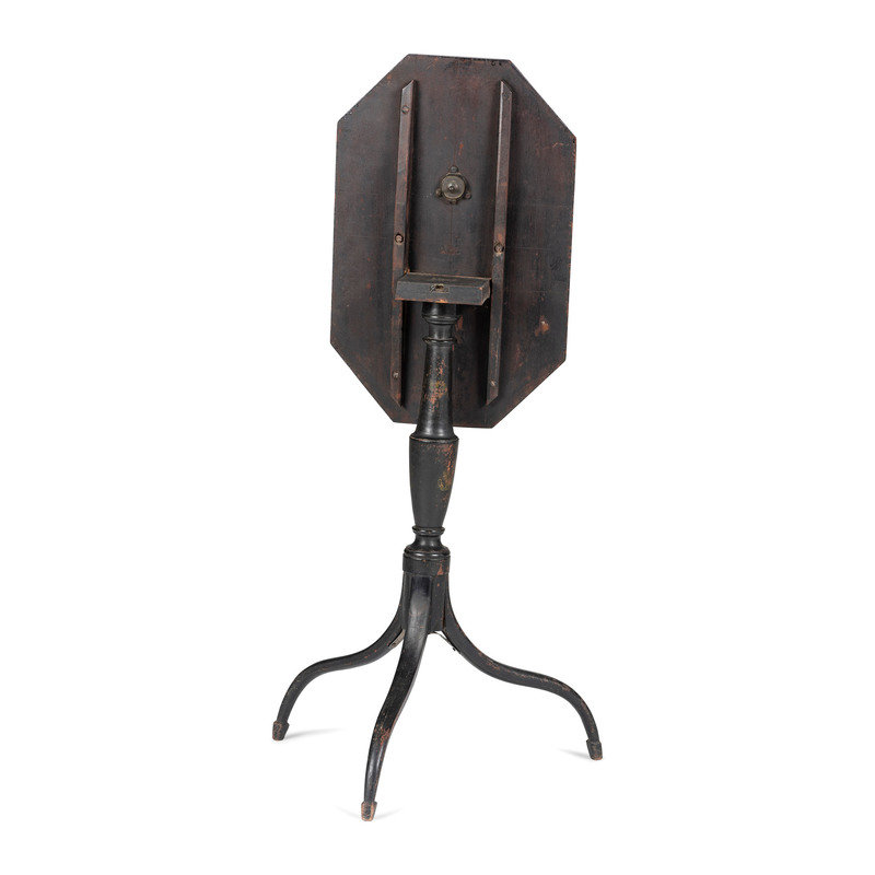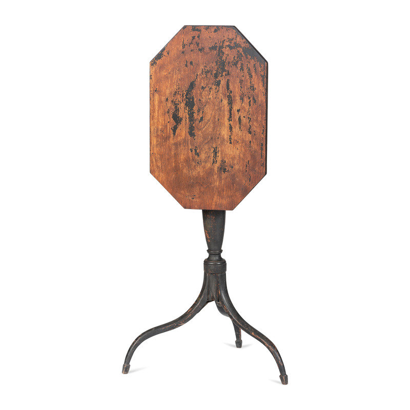 A Federal Black Painted Cherry/Maple Octagonal Tilt Top Candlestand