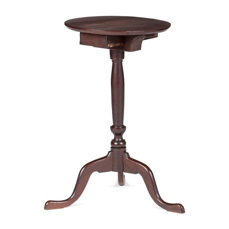 A Federal Punched Walnut and Maple One-Drawer Candlestand