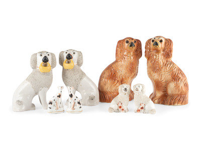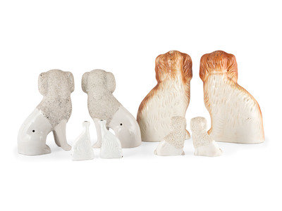 Eight Staffordshire Glazed Earthenware Hounds and Spaniels
