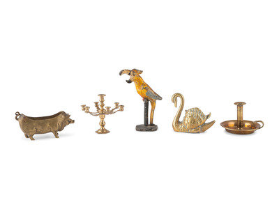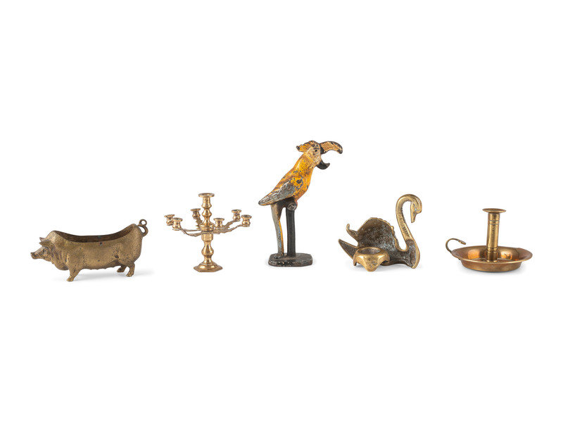 including four brass articles, and a cast iron bottle opener.