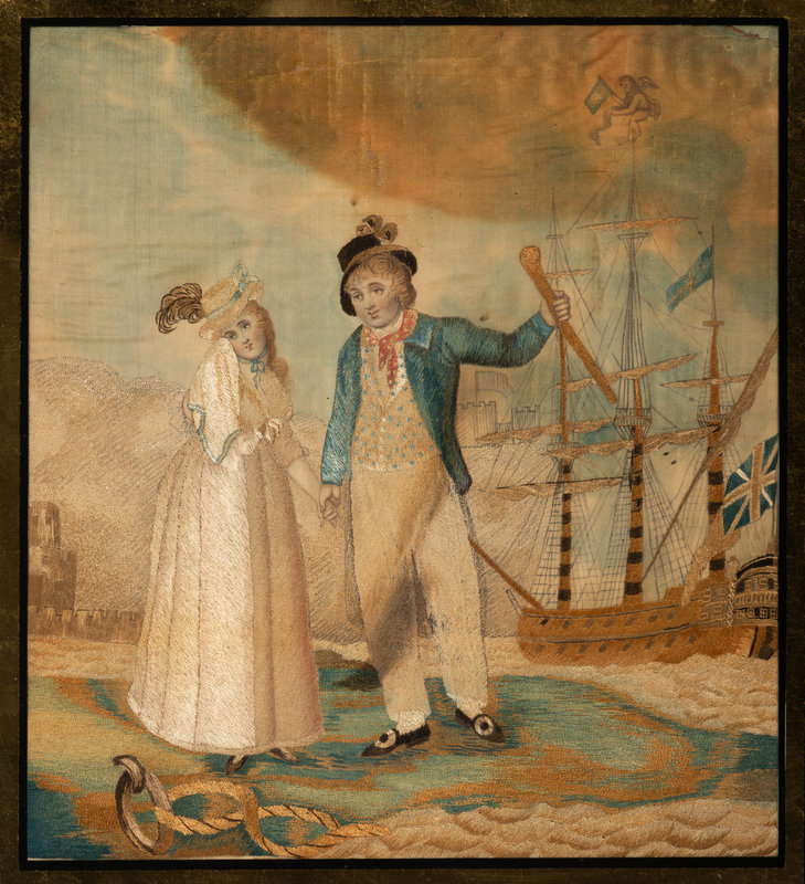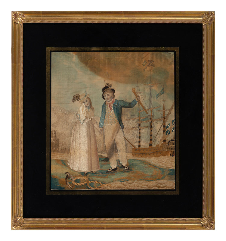 An English Silkwork Embroidered 'Sailor at Port' Picture