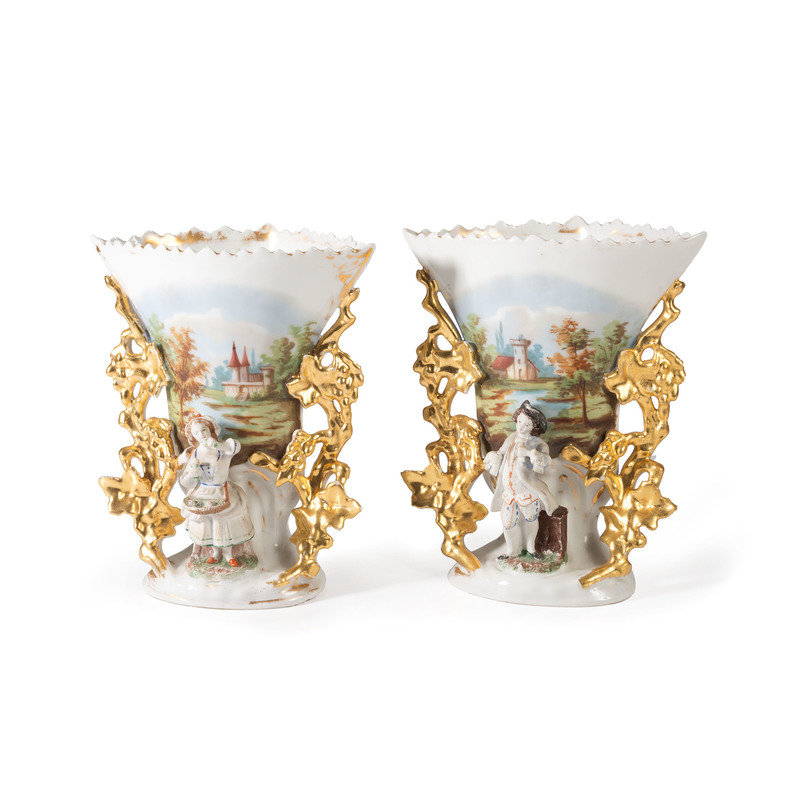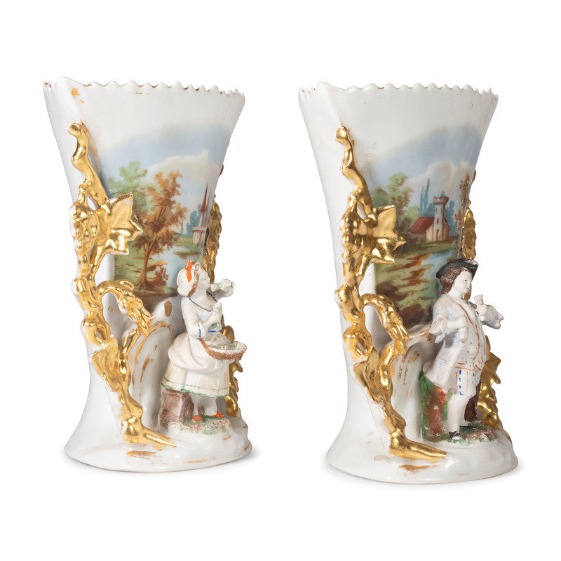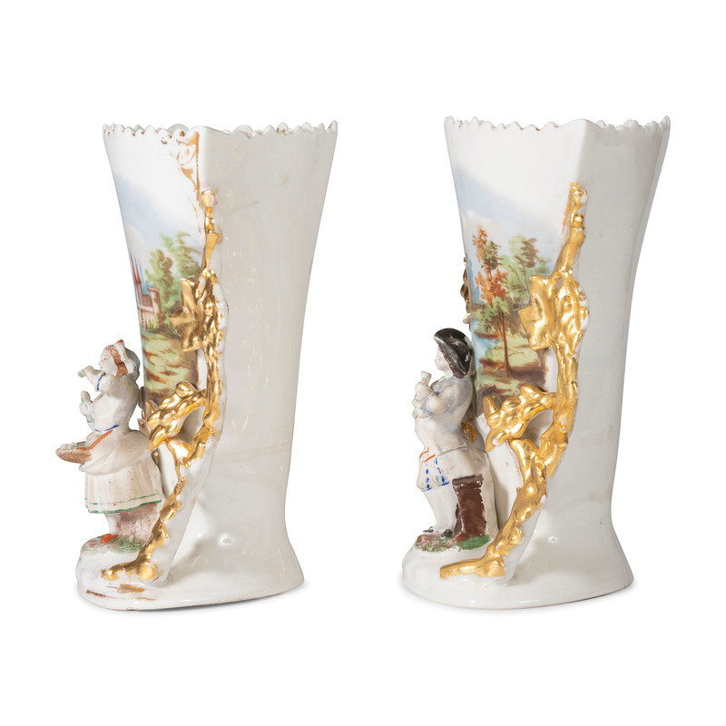 A Pair of Paris Porcelain Landscape Vases with Bisque Figures