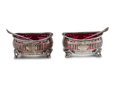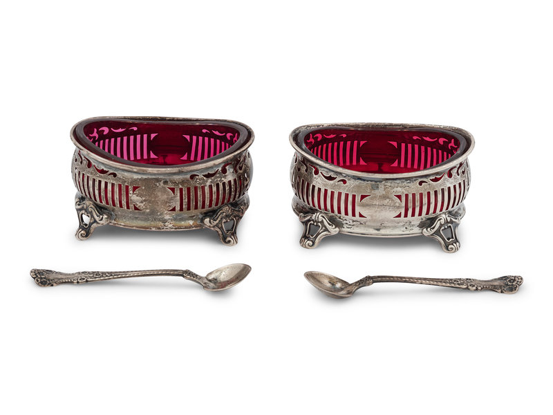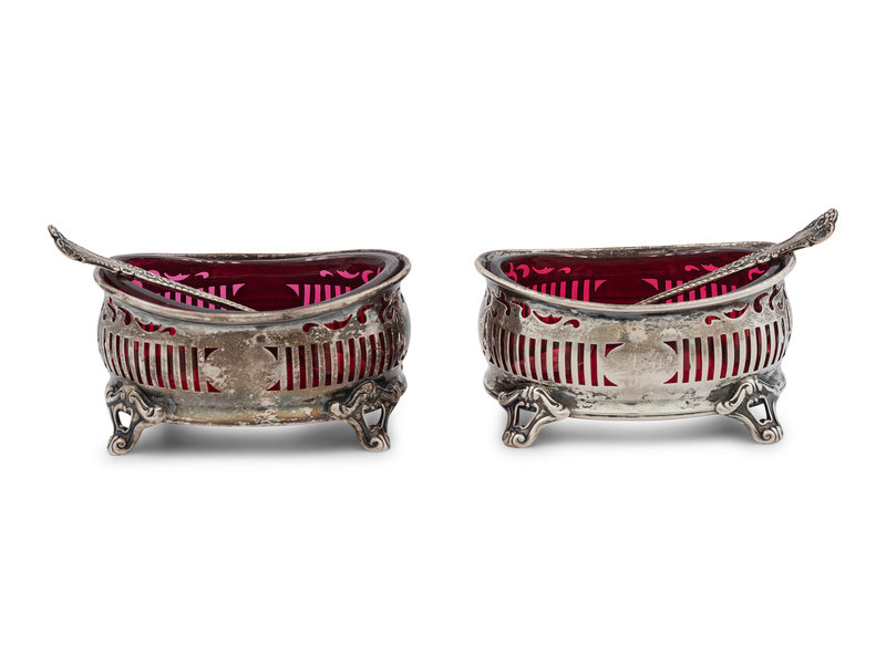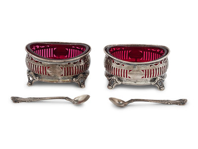 A Pair of American Silver and Glass-Lined Salt Cellars