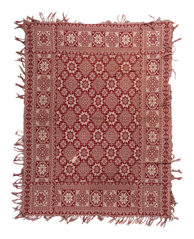 Red coverlet 86 x 68 inches.