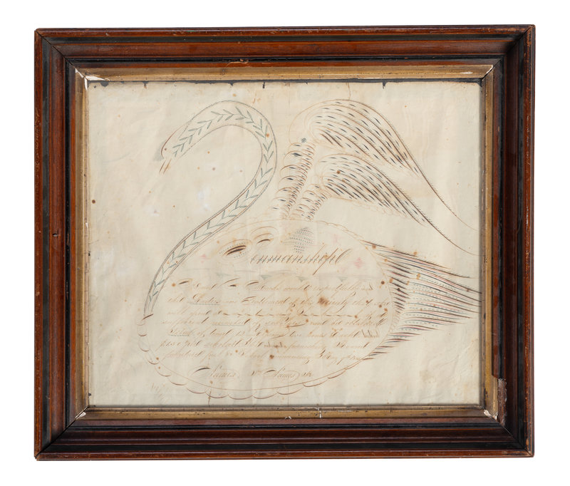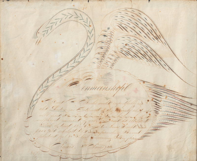 A Swan-Decorated Spencerian Ink Drawing