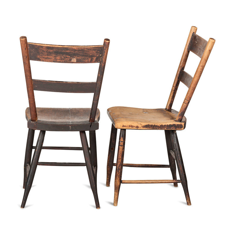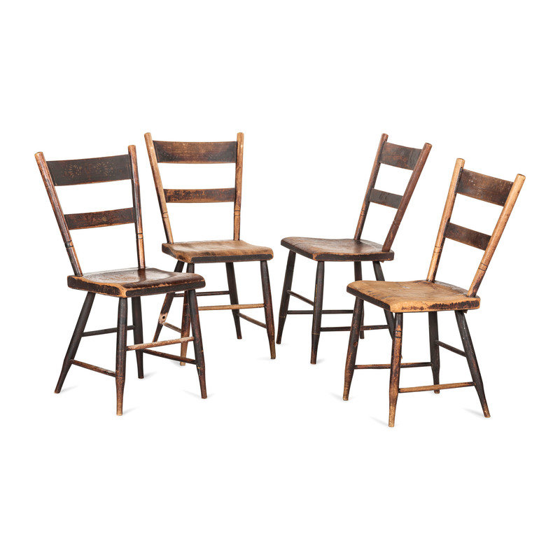 A Set of Four Hitchcock Black Painted and Stencil-Decorated Plank Bottom Side Chairs