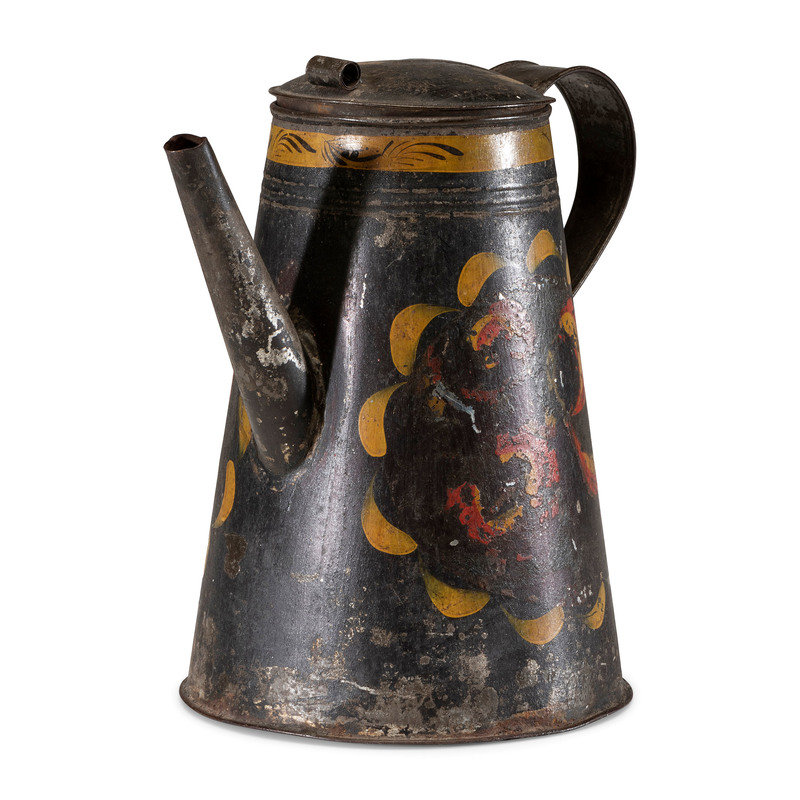 A Toleware Polychrome Decorated Coffee Pot
