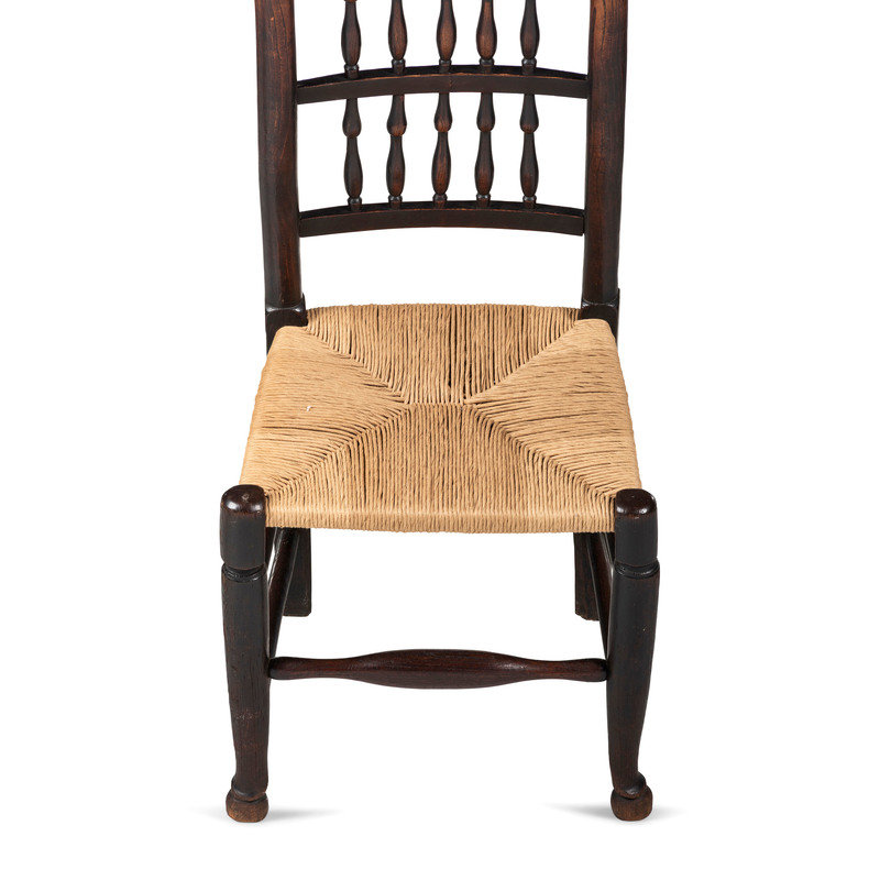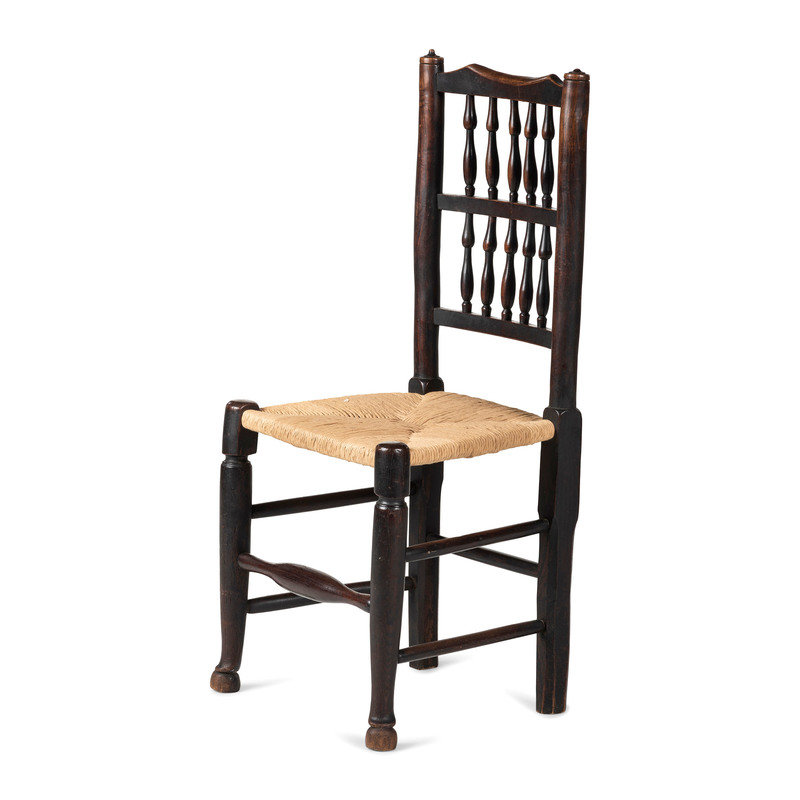 A William and Mary Turned Maple Rush-Seat Hooved-Foot Side Chair