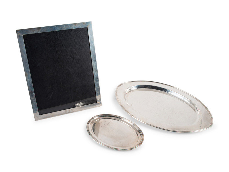Two American Silver Trays and a Picture Frame