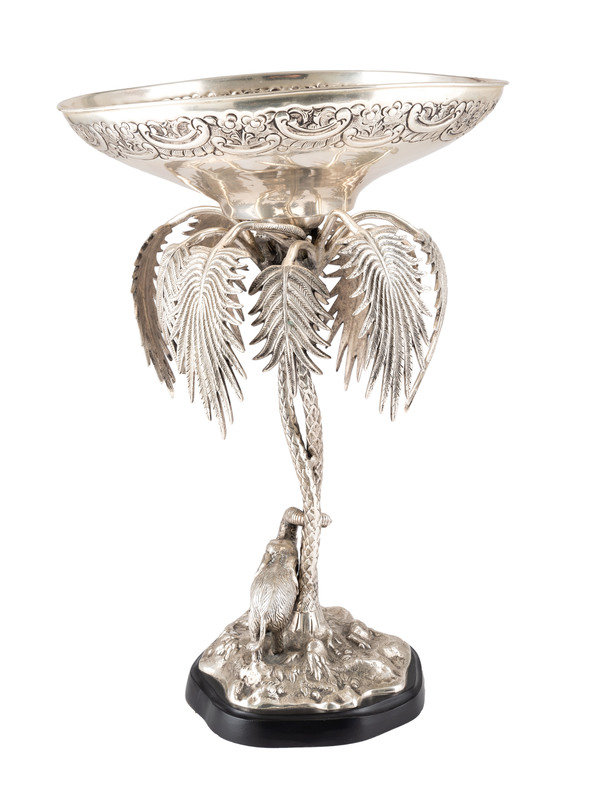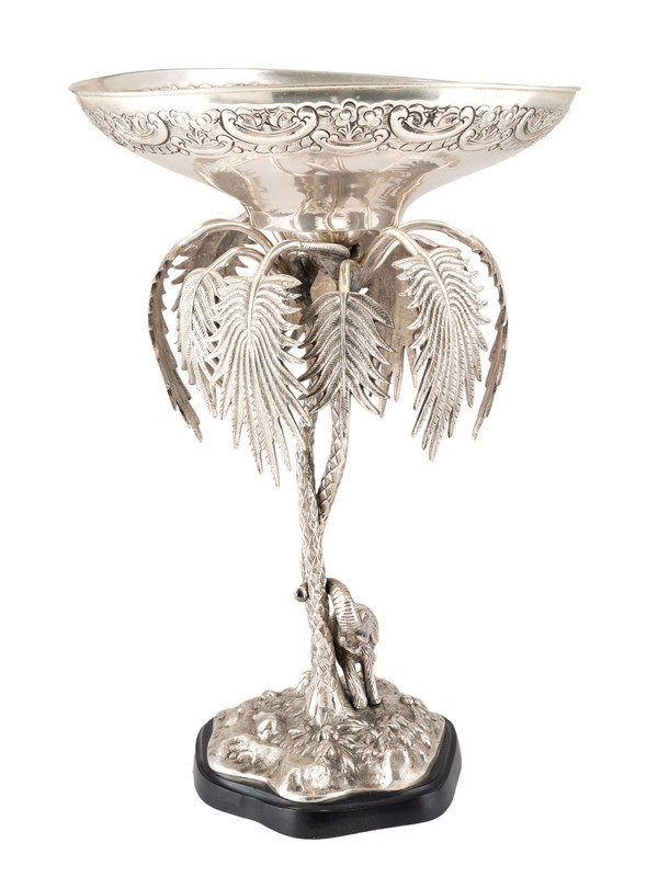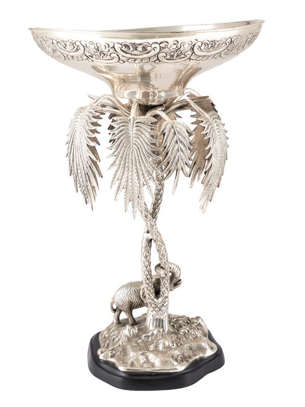 A Silverplated Compote with Elephant and Palms
