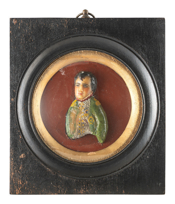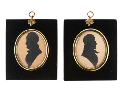 A Pair of Cut Paper Silhouette Portraits and a Wax Portrait