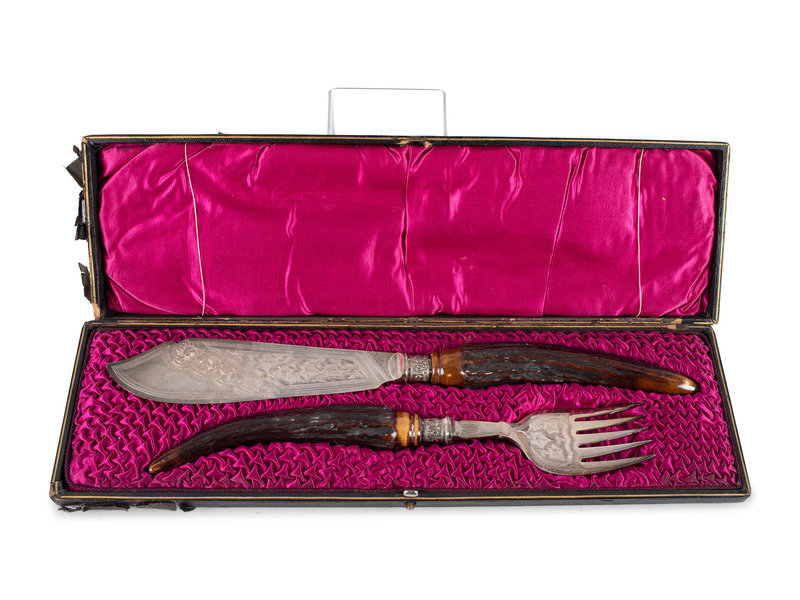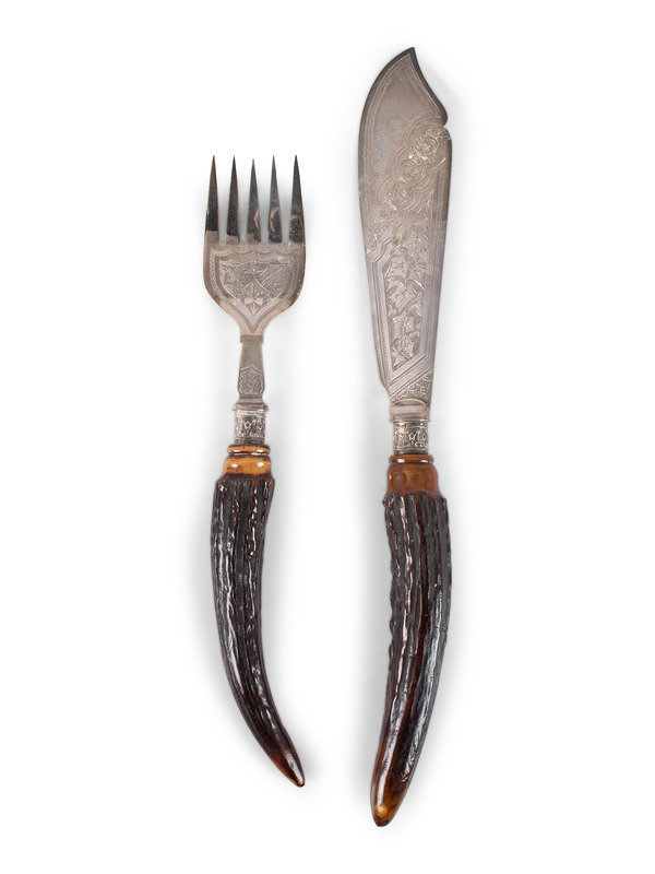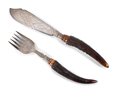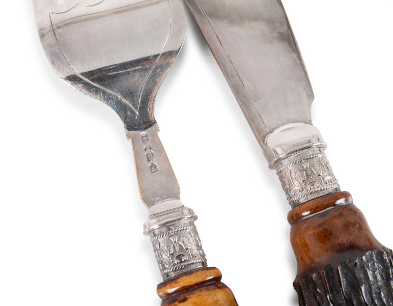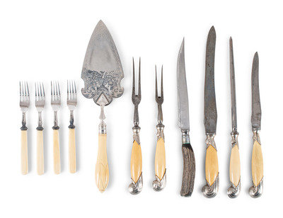 A Group of English Antler and Bone-Handled Flatware and Serving Pieces