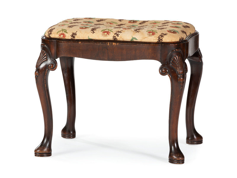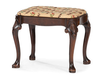 A Chippendale Style Mahogany Foot Stool with Embroidered Upholstery