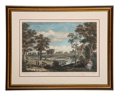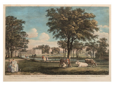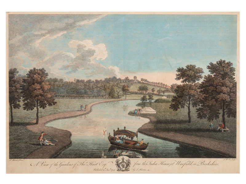 including two Views of the Gardens of Tho. Hart Esq from Portico at Warfield and the India House at Warfield by J. Harris and J. Wood, and views of Ditchley in Oxfordshire and Wooburn in Surry by Luke Sullivan.