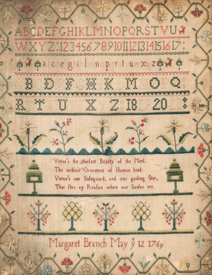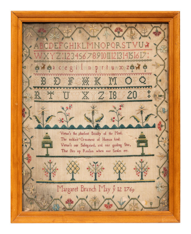 An English Needlework Embroidered Schoolgirl’s Sampler