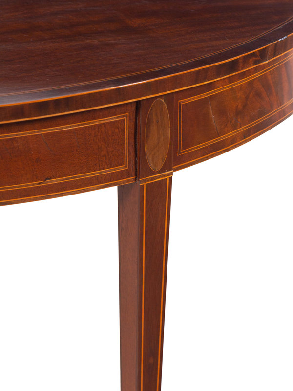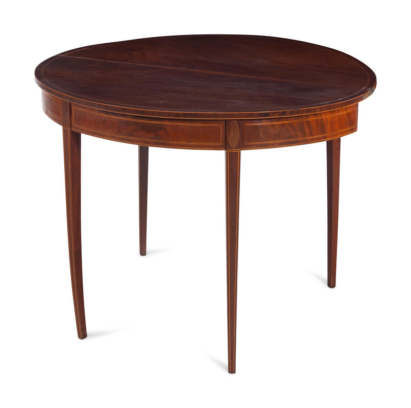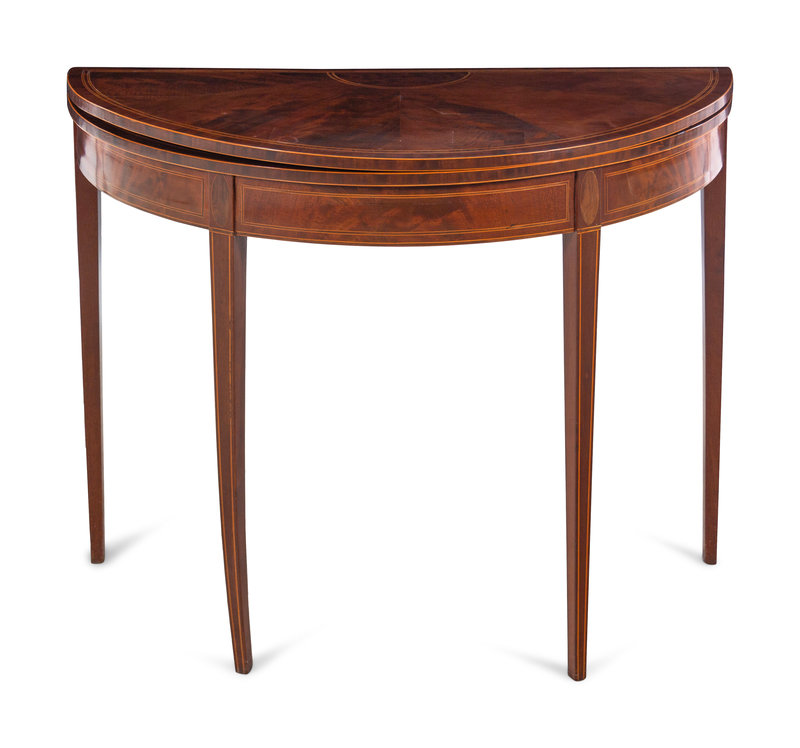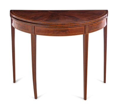 A Federal Inlaid and Figured Mahogany Demilune Game Table