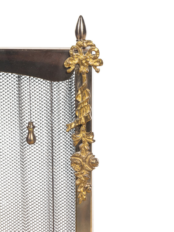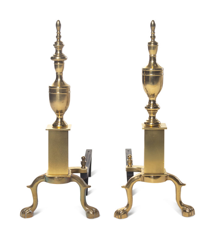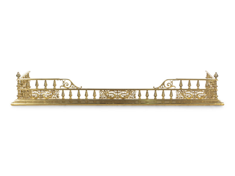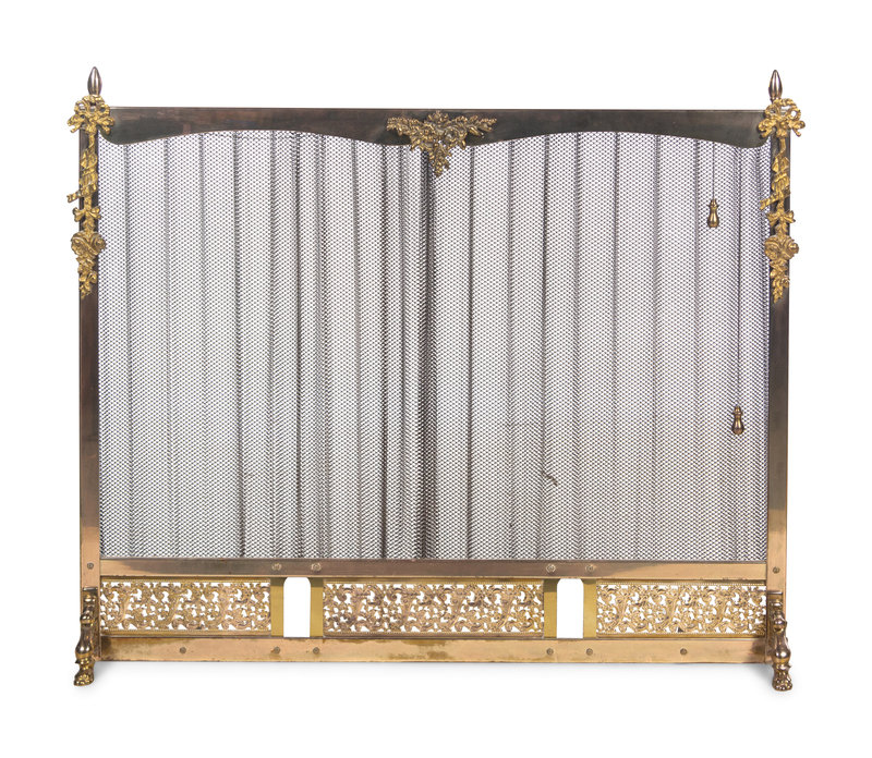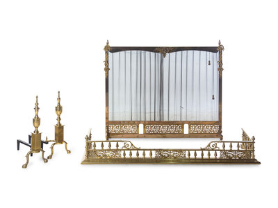 A Pair of Federal Style Brass Andirons with an Associated Fender and Screen