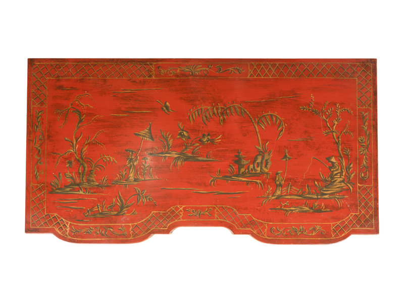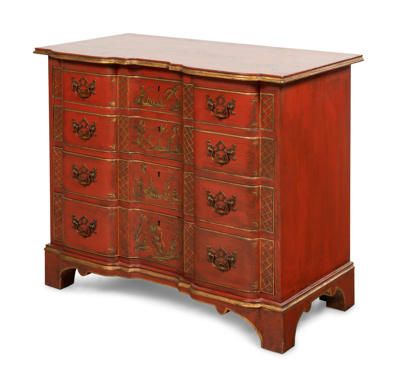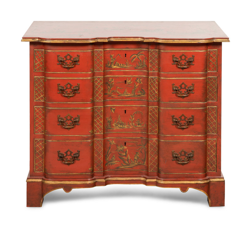 A Kittinger Old Dominion Red Japanned Chippendale Style Chest of Drawers