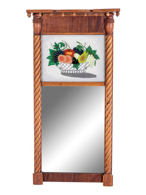 A Classical Spiral-Twist Carved Walnut and Églomisé Looking Glass