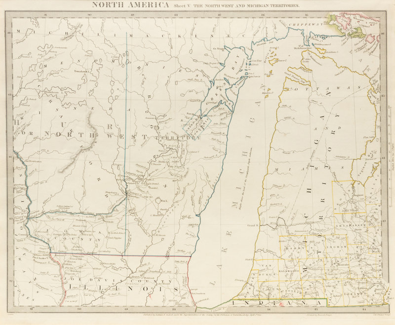 together with a map of Lake Michigan and its surrounding states; 6 items total.