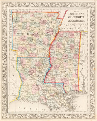 Five Framed Maps Pertaining to Louisiana and the Surrounding States