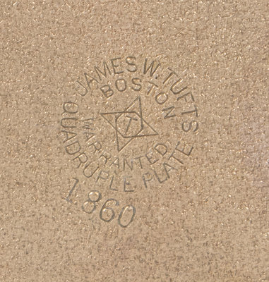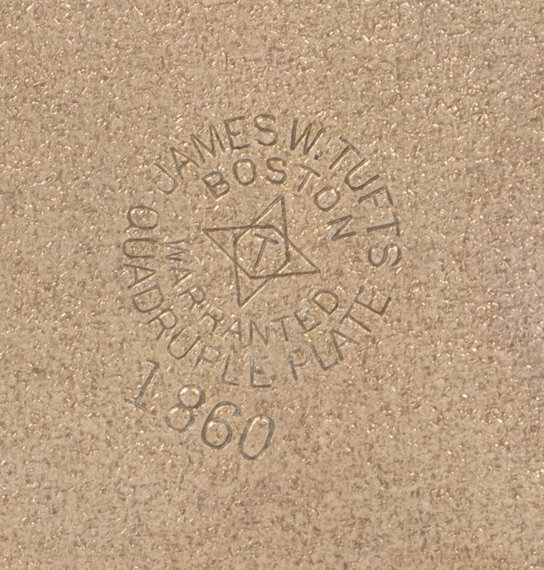 marked James W. Tufts/ Boston/ Warranted/ Quadruple Plate/ 1860 to the underside.
