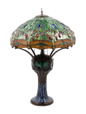 An American Leaded Glass Table Lamp