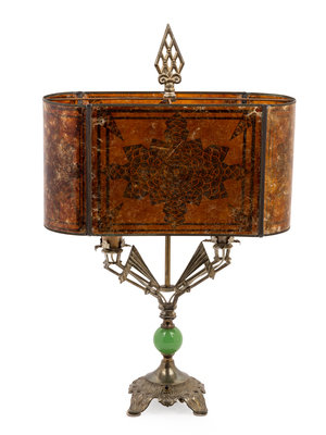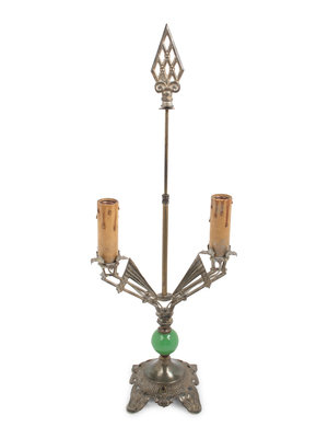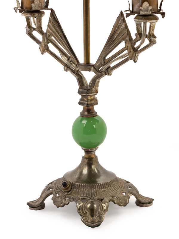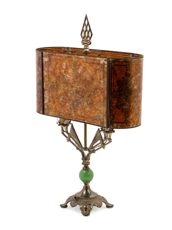 An Art Deco Chromed Metal Lamp with a Mica Shade