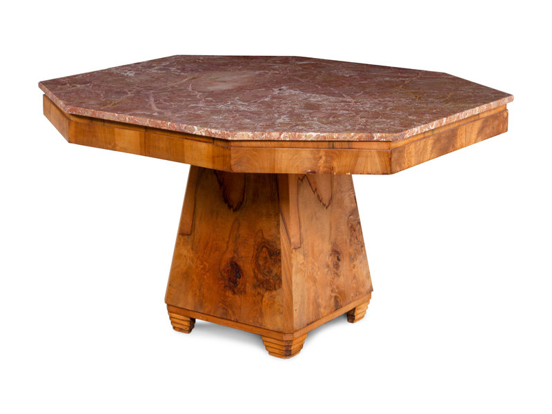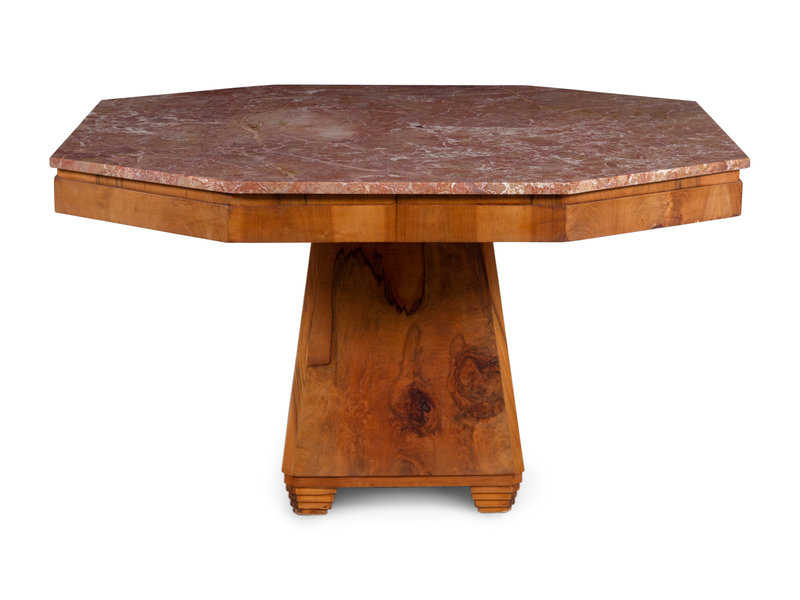 An Art Deco Walnut and Marble-Top Breakfast Table
