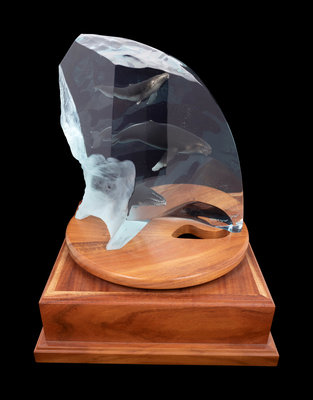 lucite on wood base