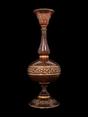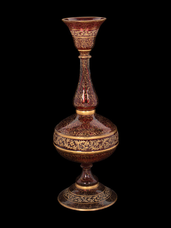 A Persian Market Gilt Decorated Cranberry Glass Vase