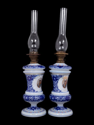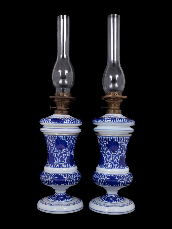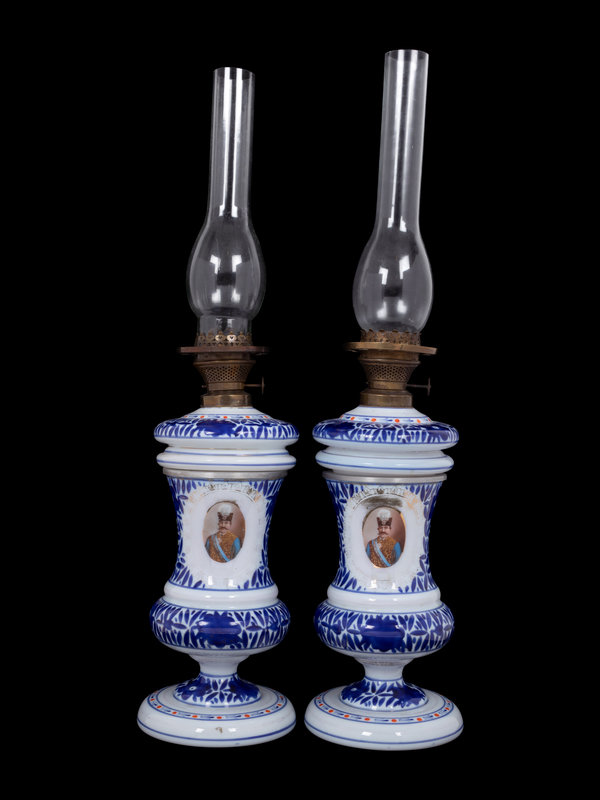 A Pair of Persian Market Opaline Glass Oil Lamps