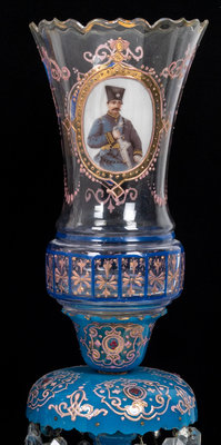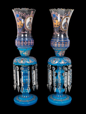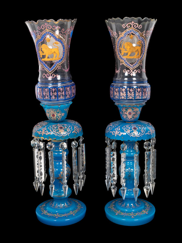 A Pair of Bohemian Enameled Opaline Glass Lusters for the Persian Market