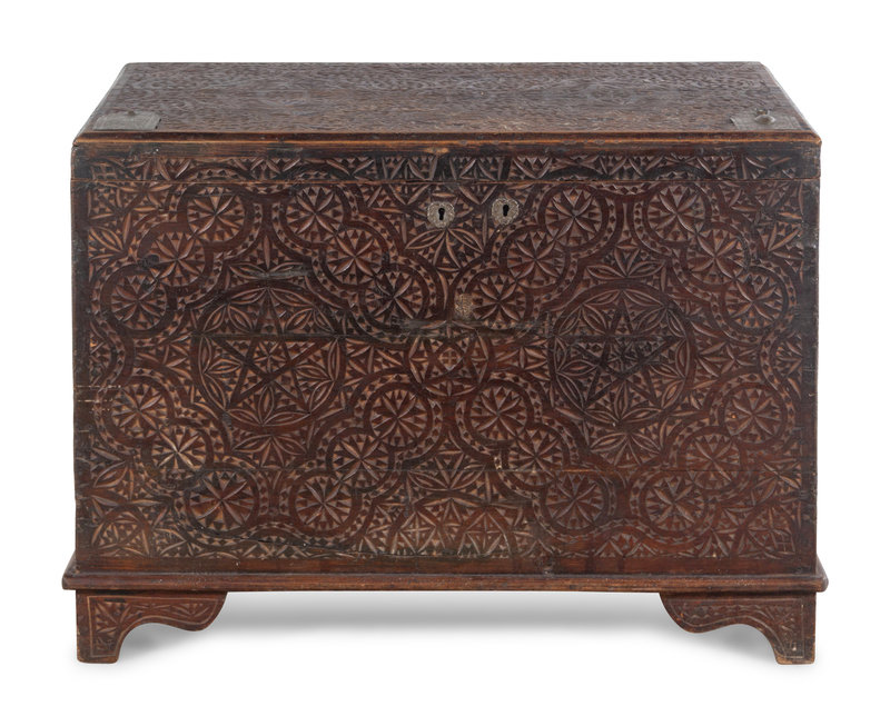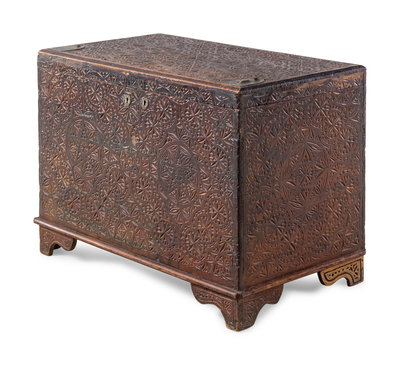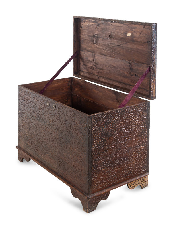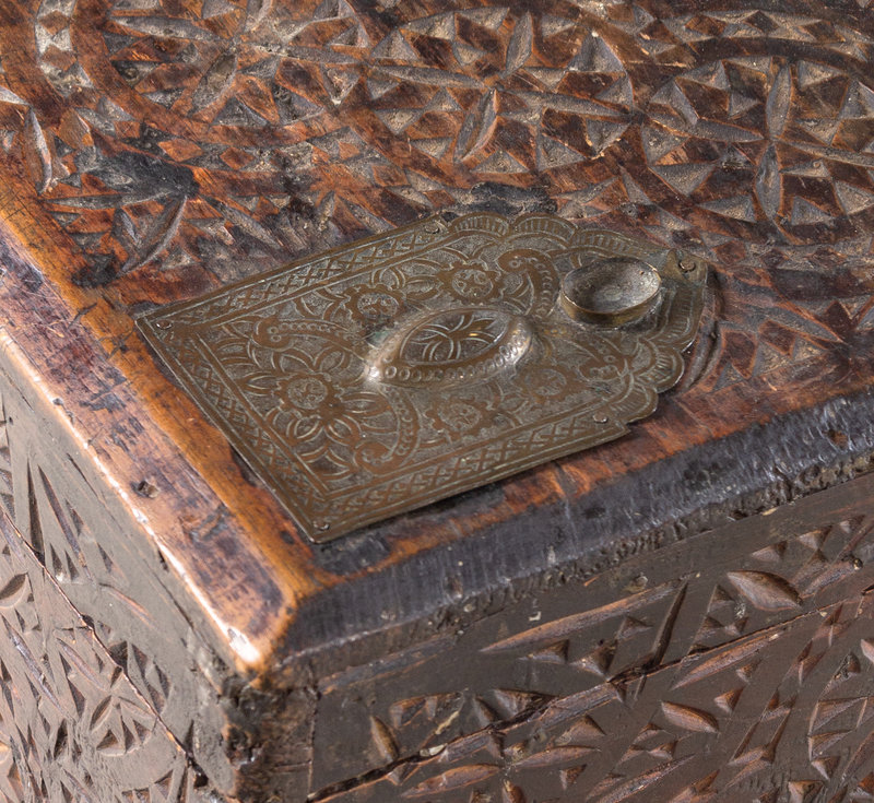 An Anglo-Indian Style Carved Teakwood Trunk