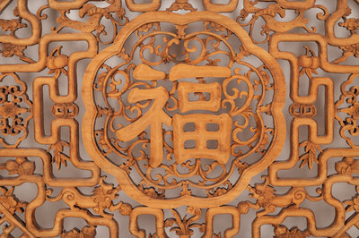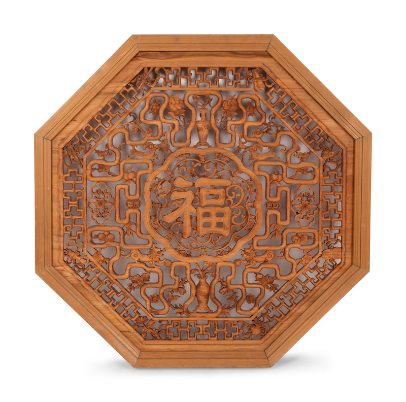 A Chinese Pierce Carved Hardwood Panel