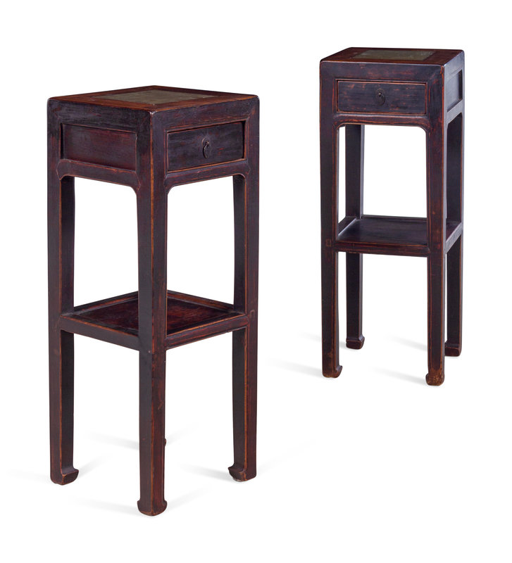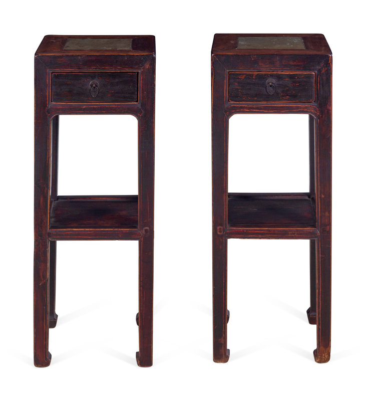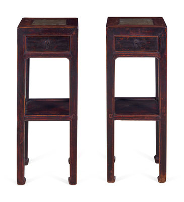 A Chinese Carved One Drawer Marble Inset Jardinière Stand