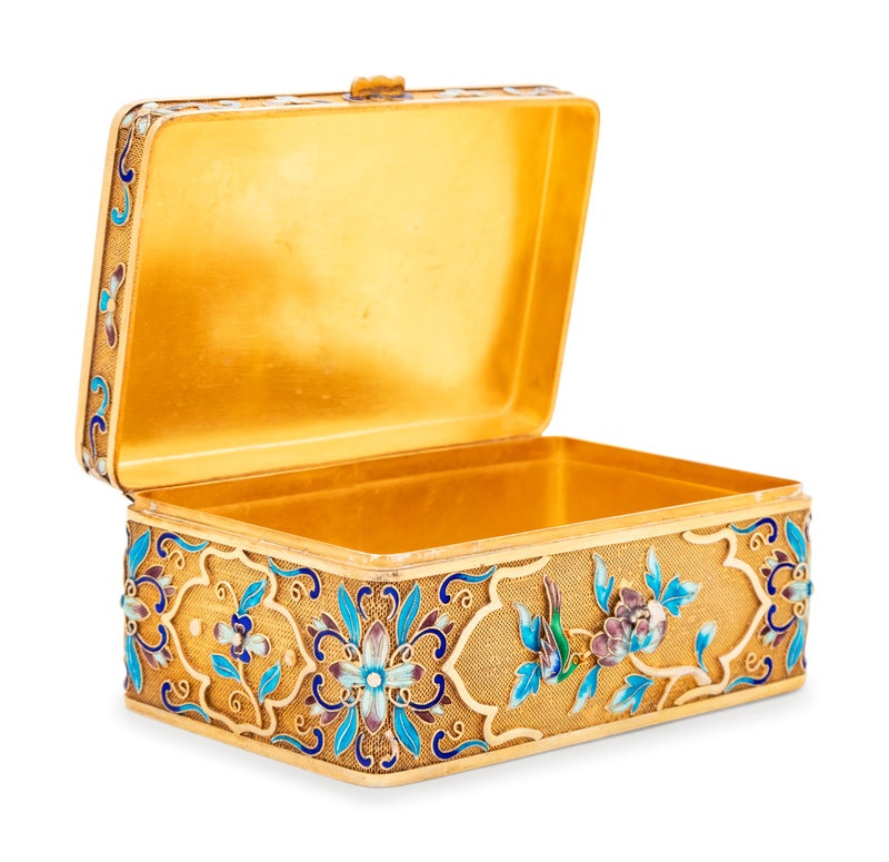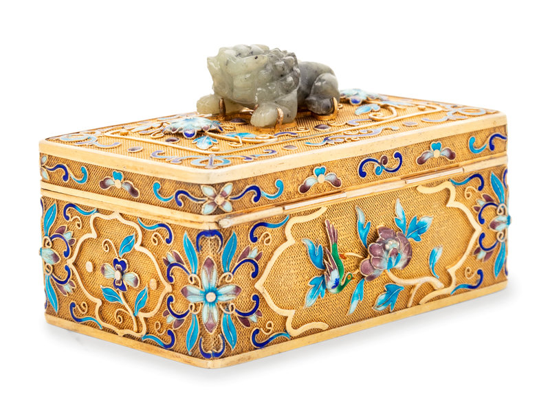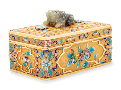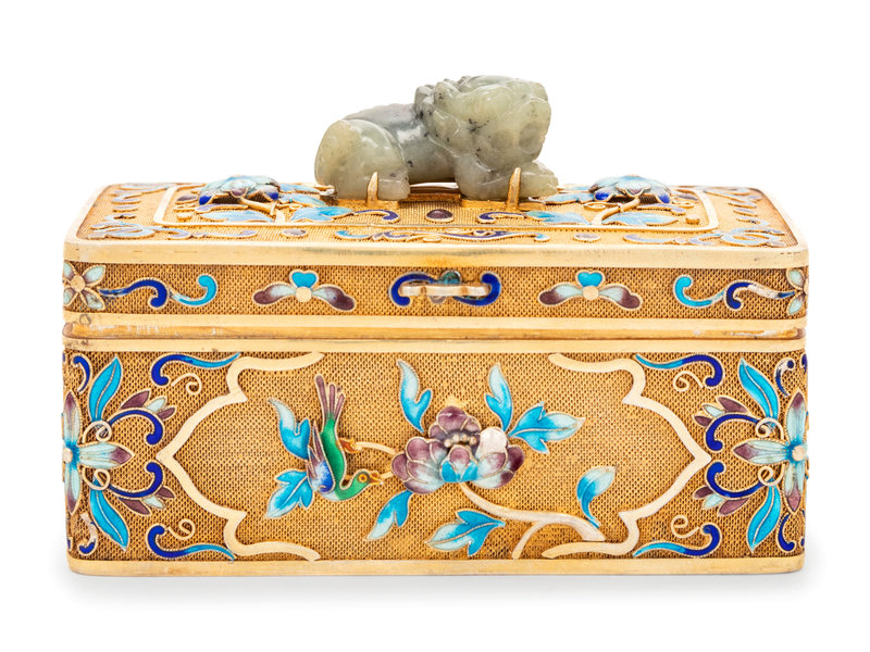 A Chinese Enameled Silver and Jade Inset Table Casket