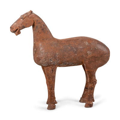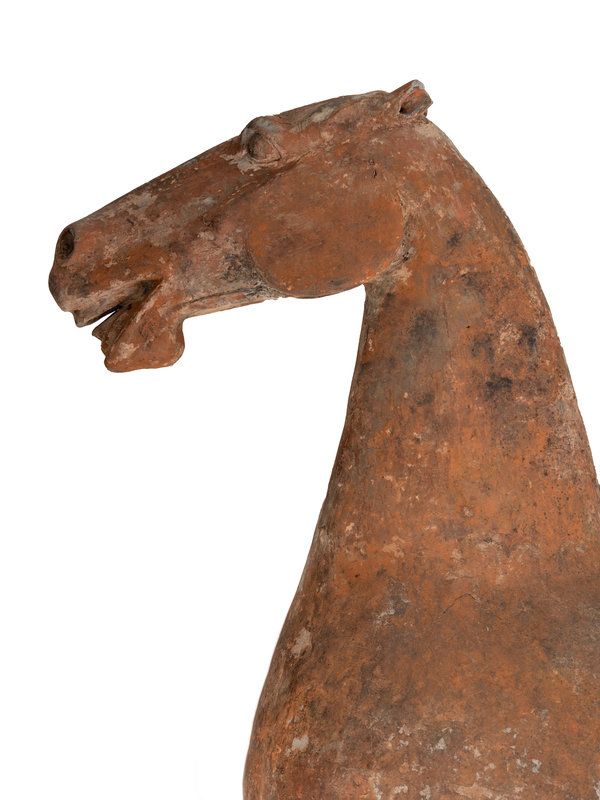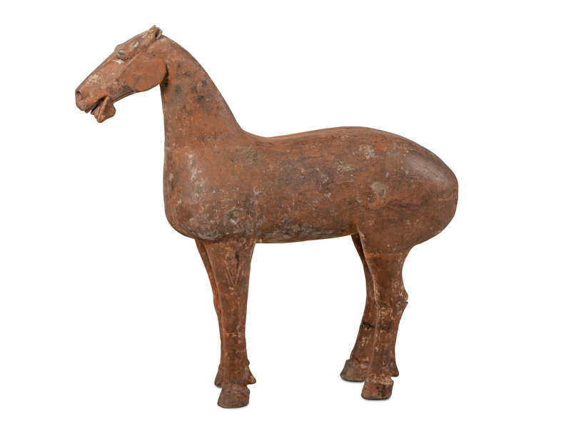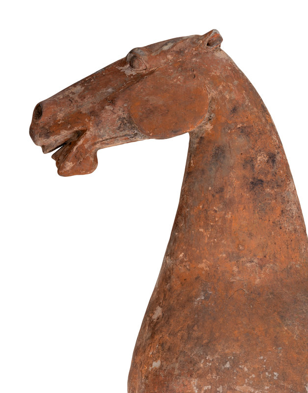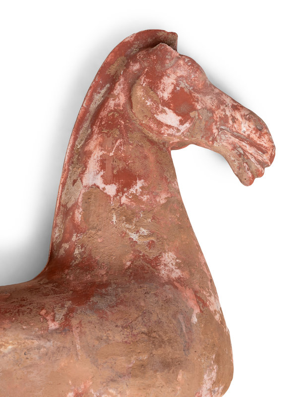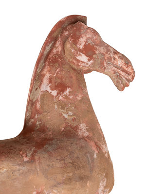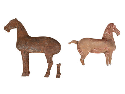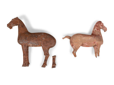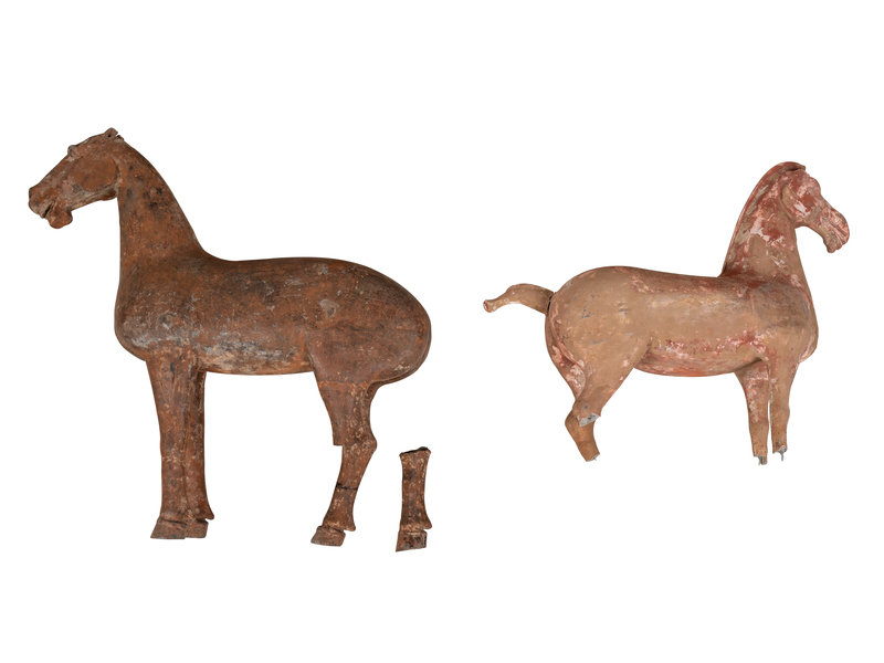 Two Chinese Terra Cotta Horses with Polychrome Remnants