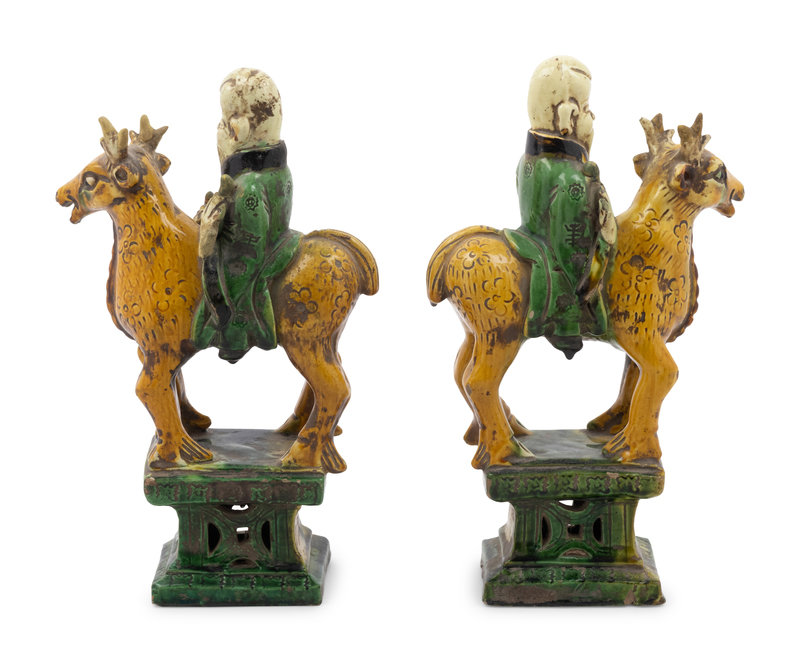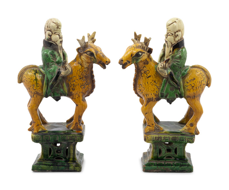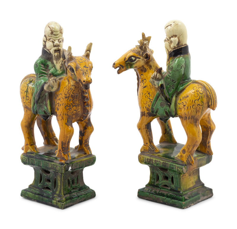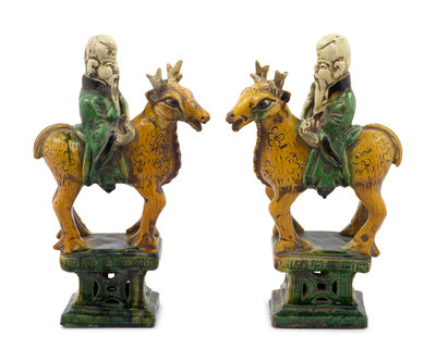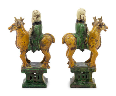 A Pair of Chinese Sancai Glazed Pottery Shoulou Form Censers