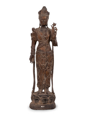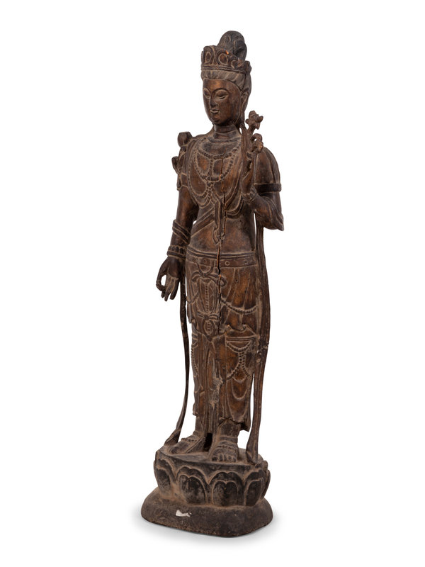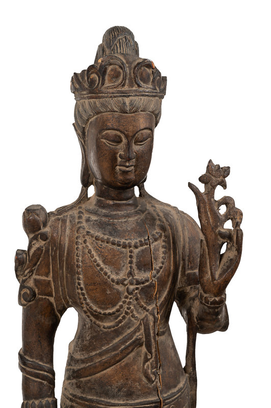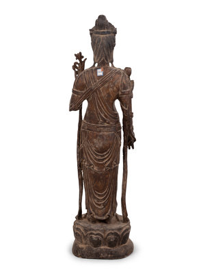 A Chinese Carved Wood Standing Guanyin Figure